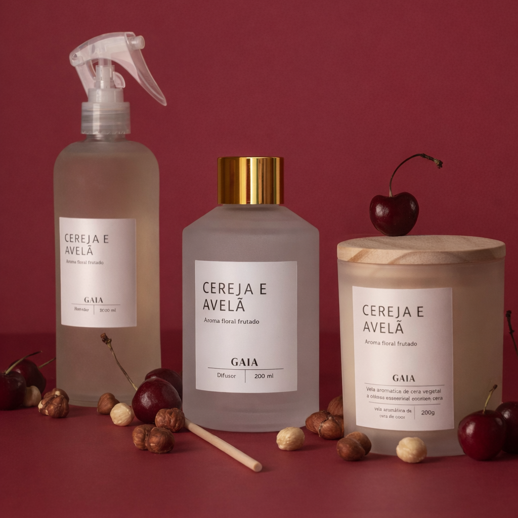 Cereja e Avelã é um aroma que traz o adocicado frutal da cereja e o floral do avelã. Aconchegante e sensual.